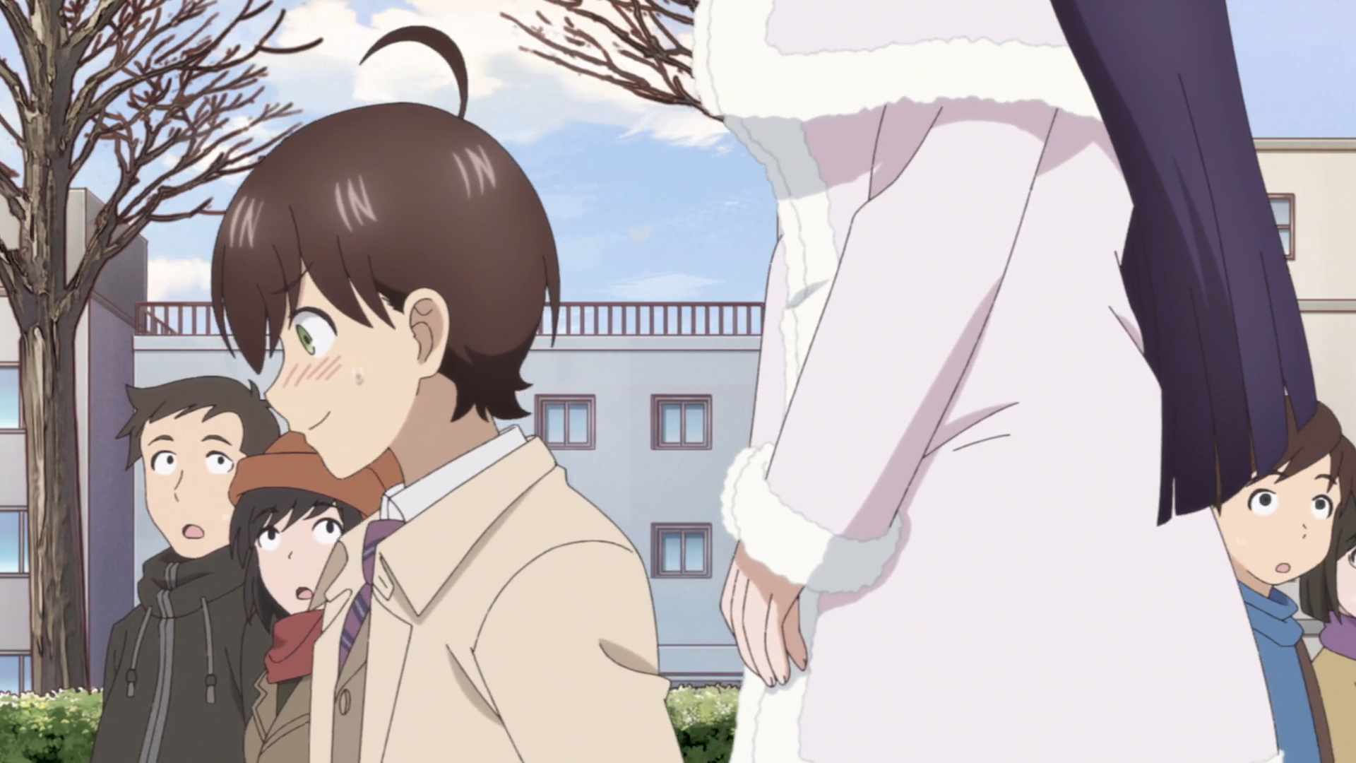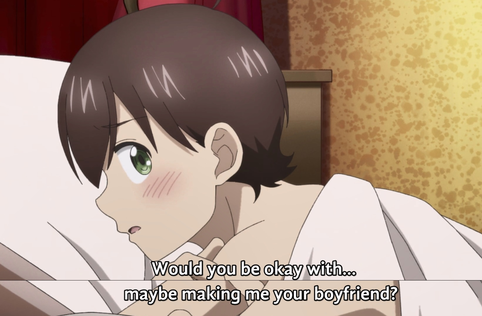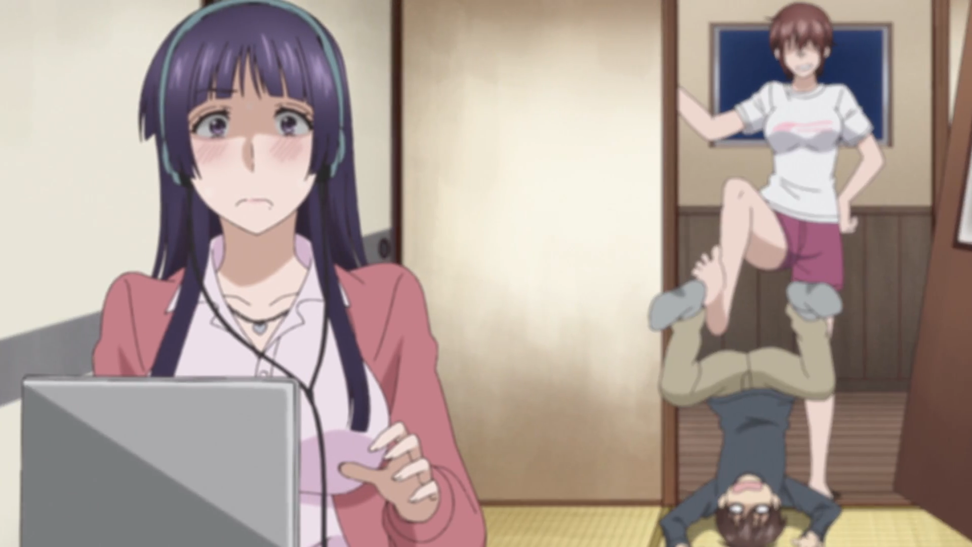 Anyway, Ayano’s watching porn on her loud, non-canceling headphones because they finally have a man in the house. Being amorous all the time is her quirk. Yay! And all the other men are too scaroused to hit on any of them, so Kaoru suggests it’s Ayano’s turn to date him.