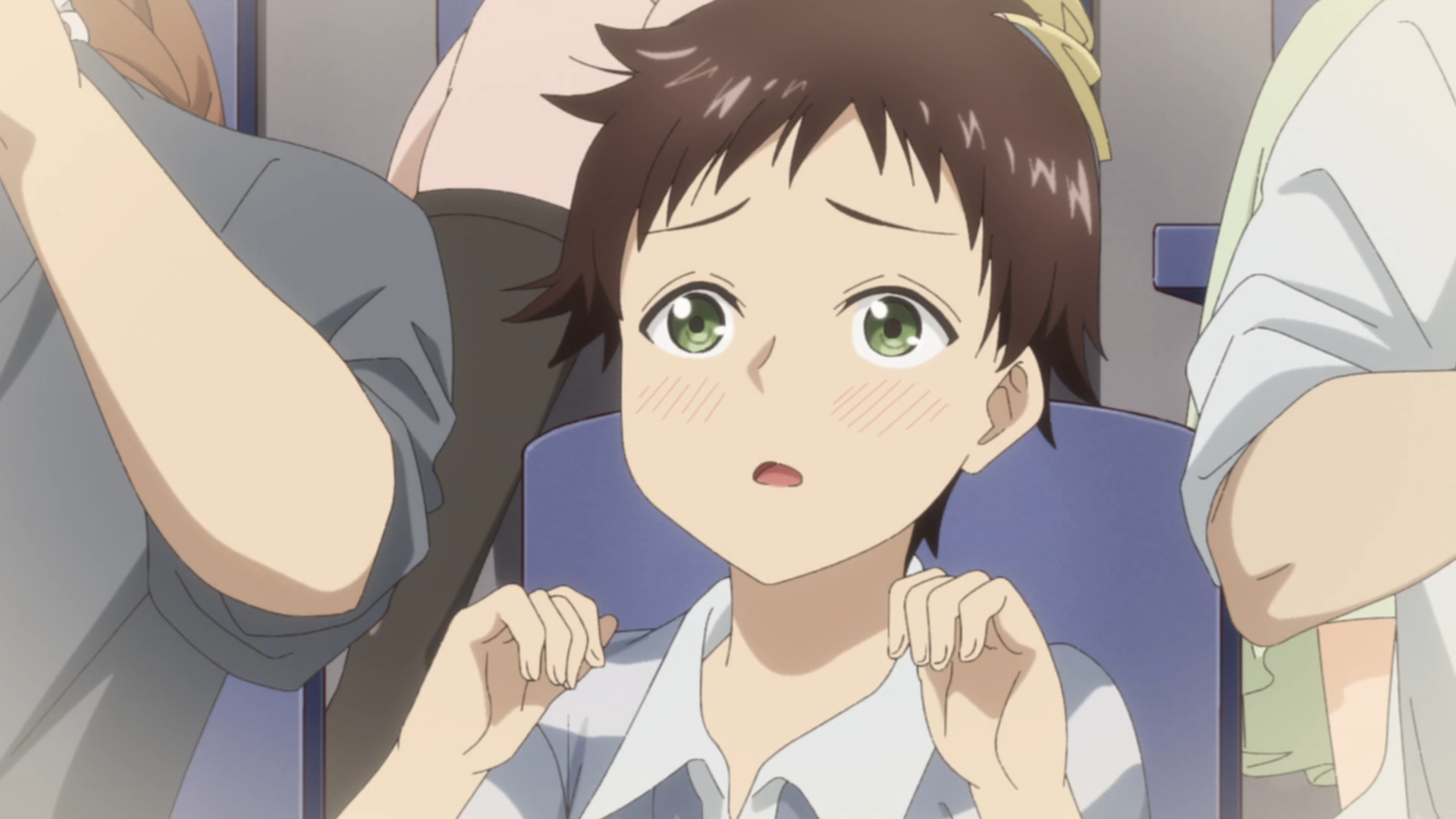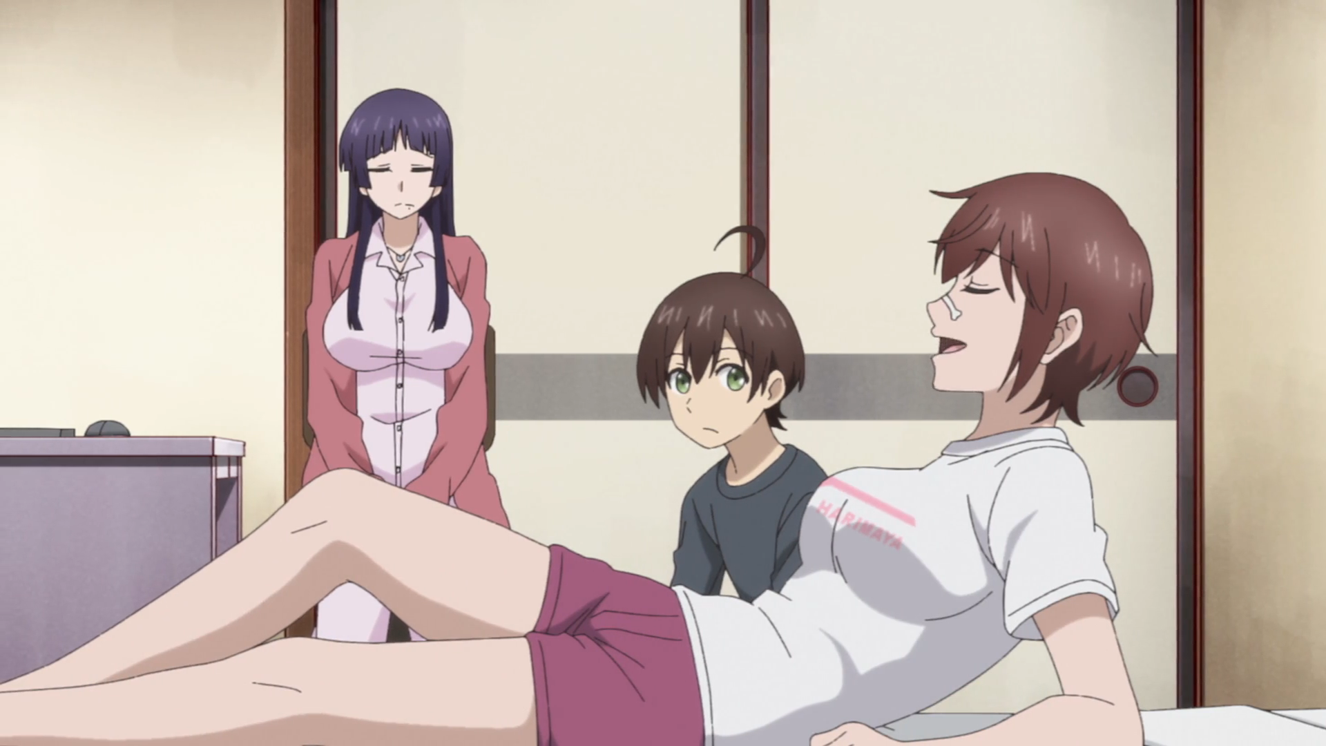 Here we see all the other big girls. This one wears glasses. Unf! The other one is shirtless, blonde, has freckles AND is American! EEEEEUNF! Also the middle girl, she’s the only one crossing her arms. You’ll know what that means. But this week’s episode is about Ayano.